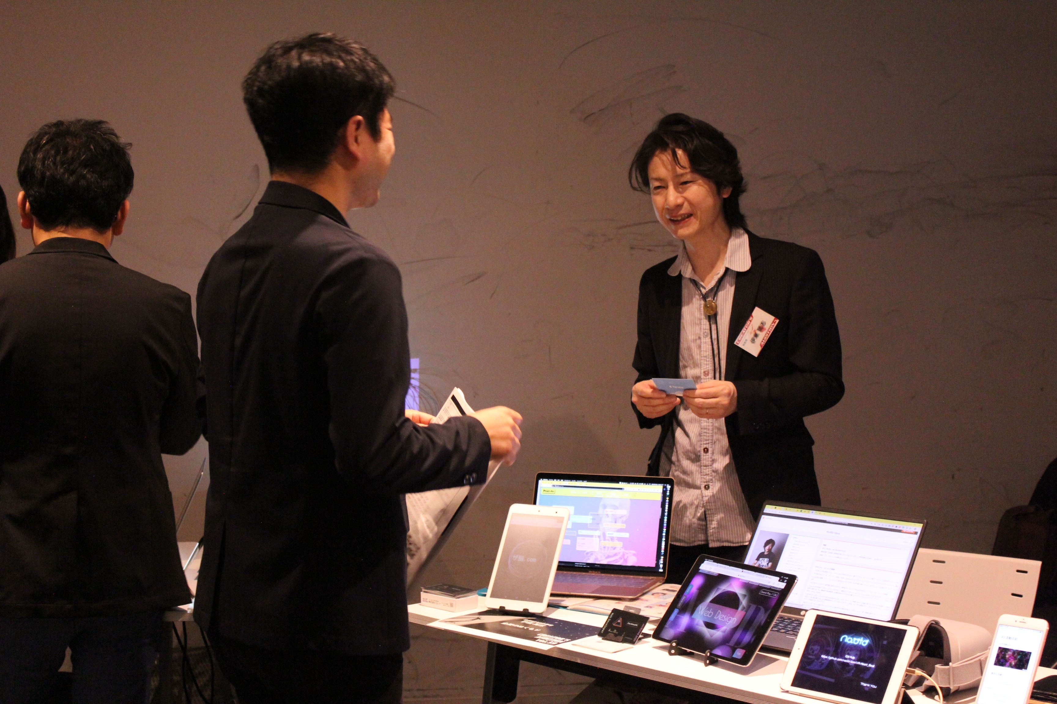 イベント内では制作した作品の展示や紹介、選出された受講生との名刺交換や採用に向けた面談を行います。
