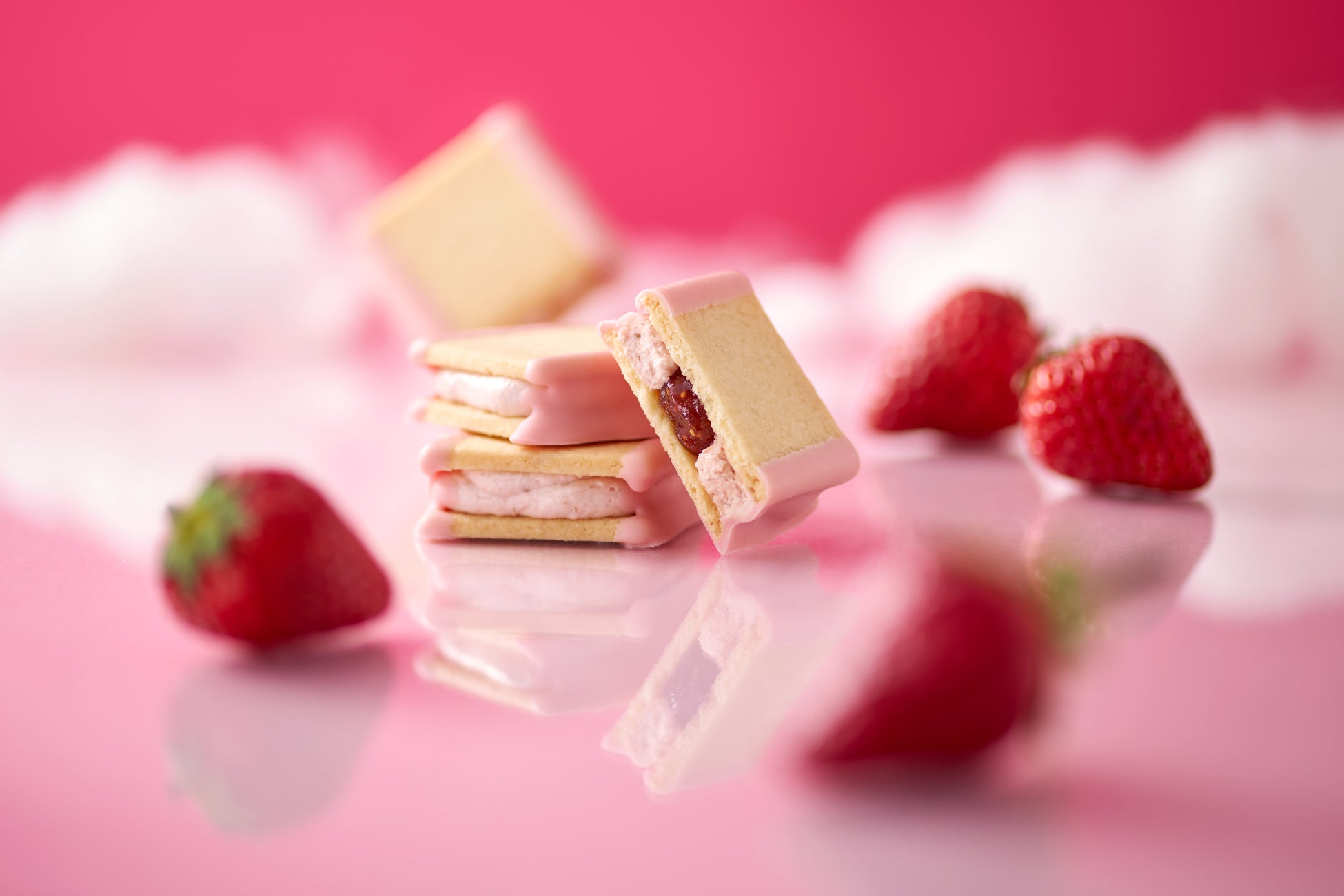 ②人気のラングドシャからnewフレーバー「苺のラングドシャ」が登場。サクサク軽い食感の後に、お口の中に広がる苺の自然な甘酸っぱさや優しい香りをお楽しみください。