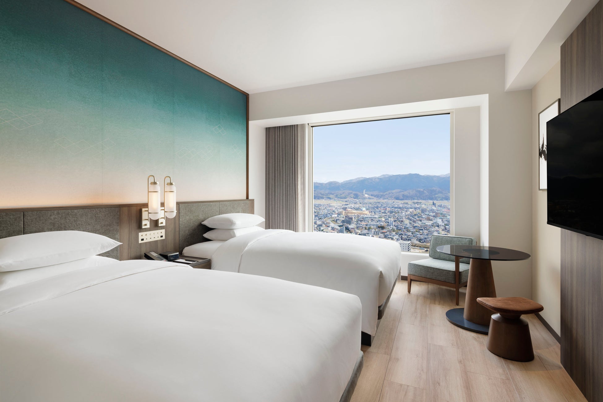 コートヤード・バイ・マリオット福井は、マリオット・グループホテルの一つとして、日本国内では、 コートヤード・バイ・マリオット名古屋に続く 7 軒目のコートヤード・バイ・マリオットブランドのホ テルとして、2024 年 3 月 15 日に開業しました。北陸初進出、福井県で初の外資系ホテルとして 2024 年 3 月に開業しました。JR 福井駅から徒歩 2 分。JR 福井駅前に誕生した 28 階建てビル「FUKUMACHI BLOCK」の高層階に位置し、福井市の素晴らしい眺めを見下ろすことができるホテルです。シンプルで 洗練されていることを表す「枯淡」をコンセプトに据え、福井の伝統工芸を取り入れつつ、シンプルな がら奥深い「美」を表現しています。