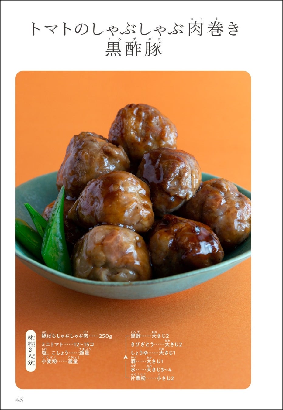 6つの工程で完成する、トマトのしゃぶしゃぶ肉巻き黒酢豚。