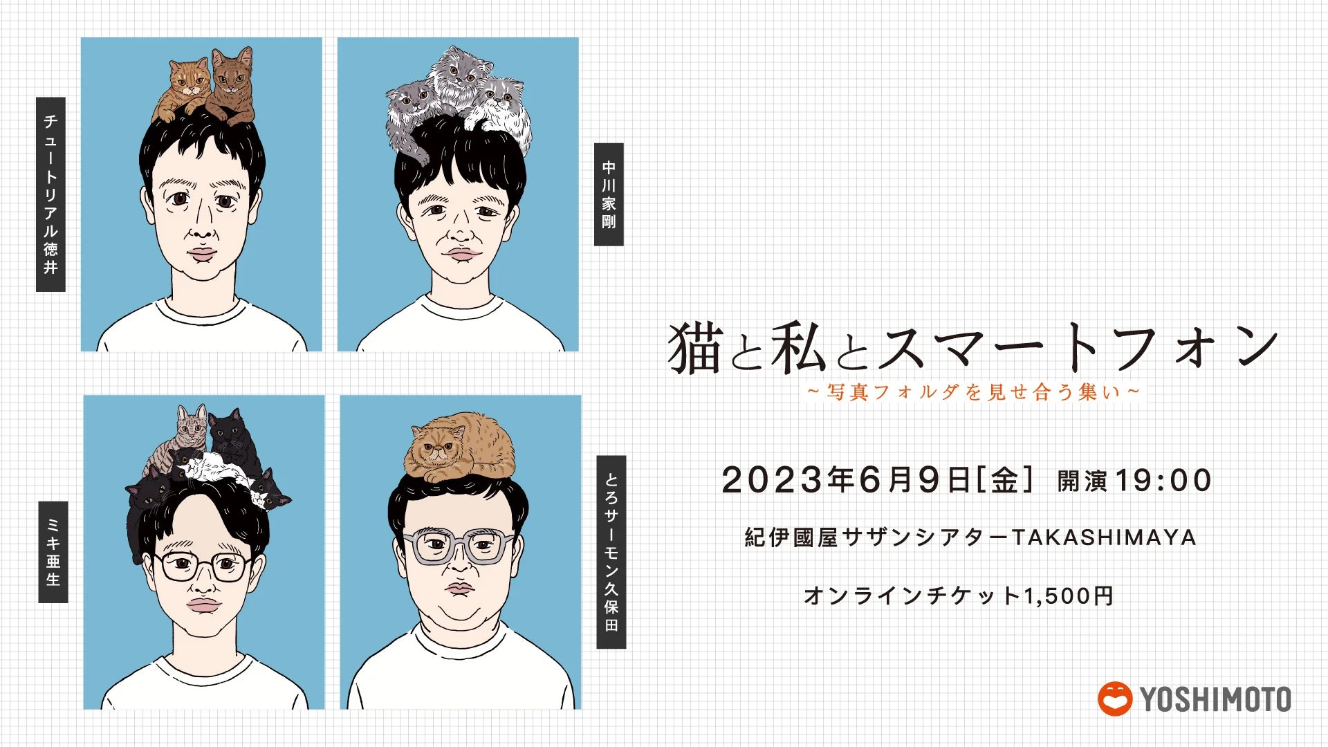 ◆概要︓中川家剛、チュートリアル徳井、とろサーモン久保⽥、ミキ亜⽣による猫トークライブを初開催︕