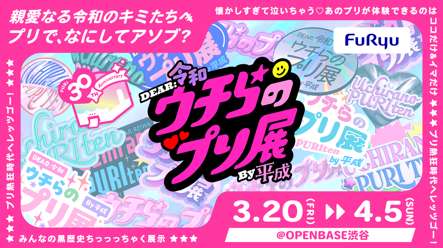 フリュー株式会社(本社:東京都渋谷区、代表取締役社長:榎本雅仁、以下フリュー)は、プリントシール(以下、プリ)機30周年を記念して、プリの魅力をお届けする様々な企画を展開し、多くの皆さまにお楽しみいただいてまいりました。そして今回、30周年記念プロジェクトの締めくくりとして、プリの聖地・渋谷にて「ウチらのプリ展 〜Dear令和 By平成〜」を3月20日(金)から4月5日(日)にOPENBASE渋谷にて開催します。