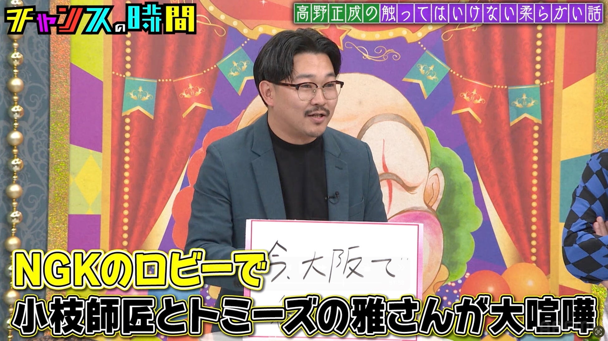 番組ではさらに、お笑いコンビ・きしたかのの高野正成が、芸人でさえ触れても面白くできないデリケートな“柔らかい部分”にまつわるエピソードを、“イジっていい”のか、“イジってはいけない柔らかい話”なのか判定する企画「高野正成の触ってはいけない柔らかい話」も放送。ピン芸人・みなみかわ、お笑いコンビ・ラブレターズ、きしたかのの岸大将、オズワルドの伊藤俊介、カカロニの栗谷が登場し、“触れていいのか微妙なラインで悩んでいる話”を披露しました。