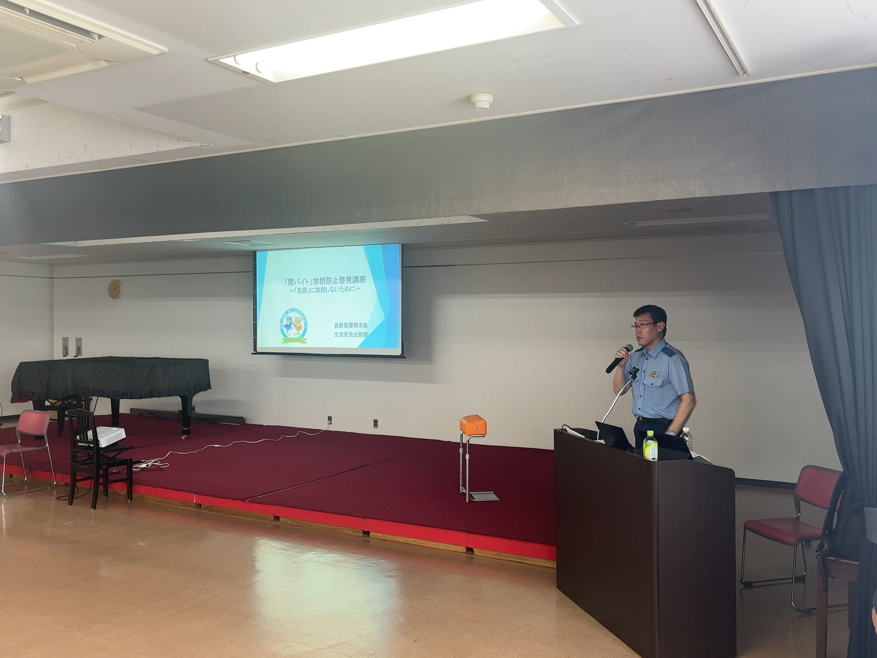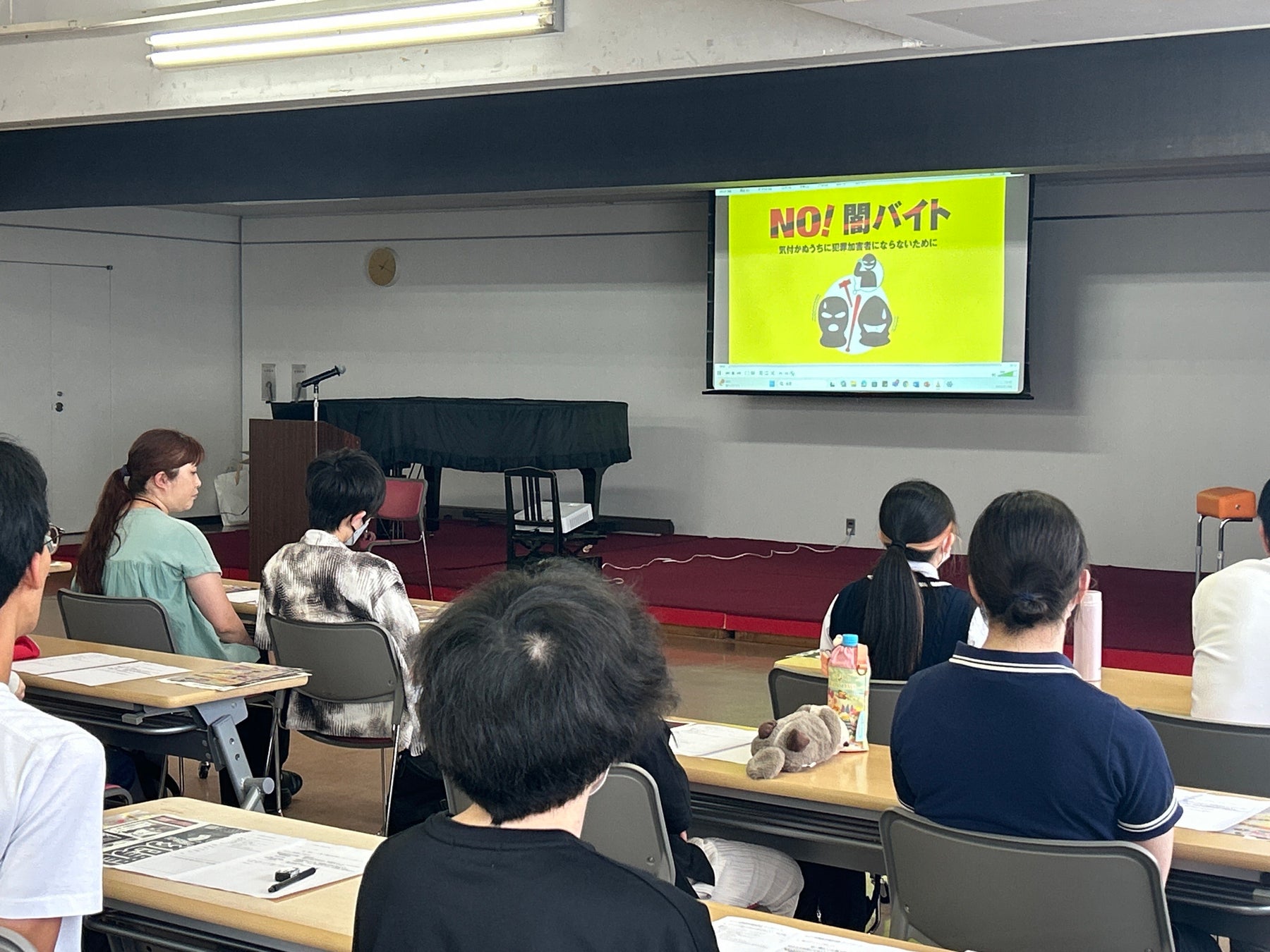 今回、夏休み前にアルバイトを探す高校生に向けて、アルバイト選びに役立つ闇バイト対策の授業を行いました。弊社の想いに共感いただき、長野県警の生活安全企画課の皆様からもご協力をいただくことができました。