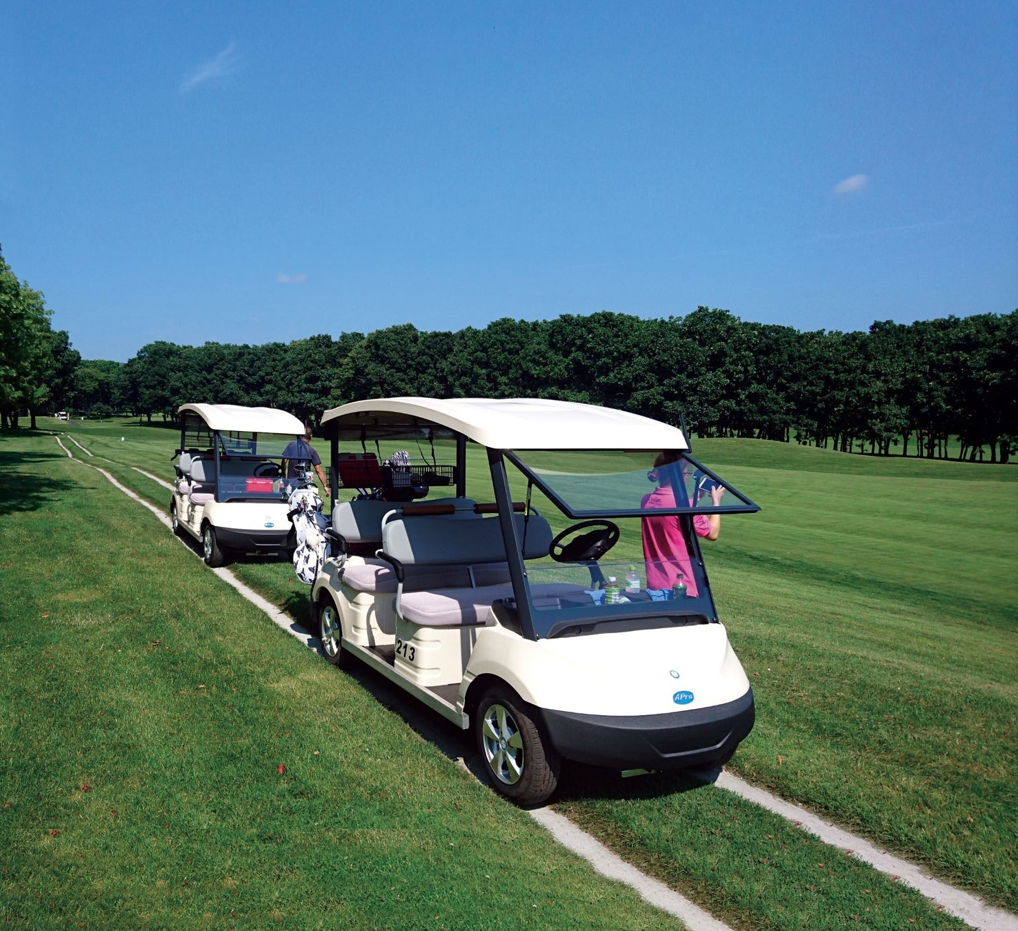 箱根園ゴルフ場は富士山と芦ノ湖を望み、駒ヶ岳の山裾をめぐるようにレイアウトされたゴルフプレーとともに絶景もお楽しみいただけるゴルフ場です。そんな箱根園ゴルフ場では、本格的なゴルフシーズンを迎えるにあたり、乗用ゴルフカートおよびナビゲーションシステムを一新いたしました。新たな乗用ゴルフカート(株式会社スマイルイービークル製:APro)は、操縦安定性と快適な乗り心地、アップダウンのあるコースでもパワフルに走る走行性を有しています。また、排気ガスや臭い、駆動音の軽減にもつながる環境保全に関心の高いリチウムイオンバッテリーの充電式乗用ゴルフカートです。