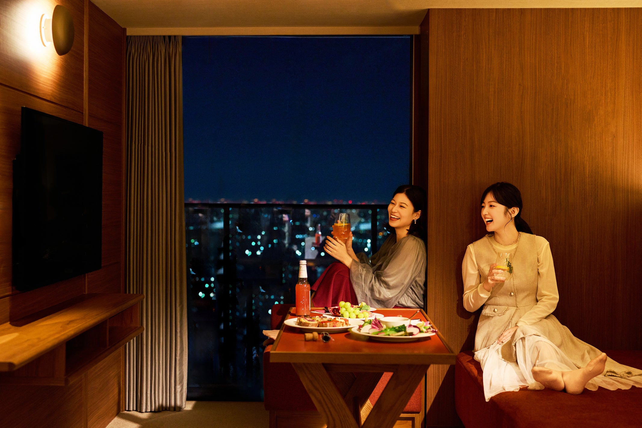 GWの観光地でのストレスの一つとなる「レストランの大行列」。そんな食事難民の悩みを華麗にスルーする裏技が、2026年1月に開業したばかりの星野リゾート初となるアパートメントホテル「OMO5横浜馬車道」にあります。全室にキッチンが完備されているため、ホテル周辺のデパ地下やスーパーで好きなグルメを買い込んで持ち込むだけで、客室がたちまち自分たちだけのプライベートレストランに!地上154mから横浜の絶景パノラマを見下ろしながら、まるでタワーマンションの最上階に暮らしているかのような、贅沢すぎる「おこもり部屋飲み」を満喫できます。