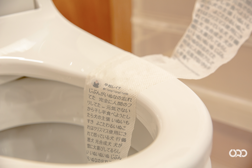 BOT-ON(ボットン)はクソツイを水に流す事を代行する新時代のトイレシステム。あなたが水に流したいクソツイはどんなものだろうか。ど滑りしたツイート?深夜に酔った勢いでつぶやいたツイート?どんなクソツイでも構わない。積極的に水に流していこう。当日は実際に我々がトイレットペーパーにクソツイを印刷し、水に流す。流した水は濾過を行い、トイレットペーパー(再生パルプ)を燃料へ再加工し、サスティナブルな資源として再利用する。スッキリ体験をぜひ、あなたにも実際に体感してほしい。