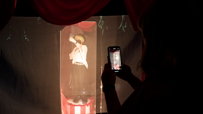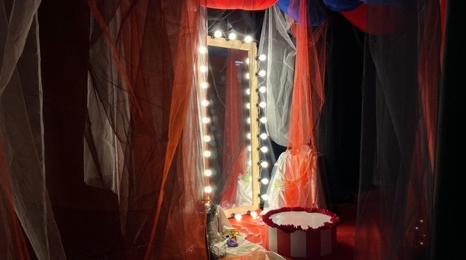 あなたは魅せる側か?それとも魅せられる側か?ただの映え空間と思いきや、裏側の部屋に進むと実はマジックミラーで覗かれていた、知らぬ間に見せ物にされていたという体験ができる。今回はものづくりに興味を持っている高校生をターゲットに体験作りを行なった。これからは仕掛けられた空間だけで過ごすのではなく、仕掛ける側になりませんか?という問いかけと提案を含めたメッセージを込めた。