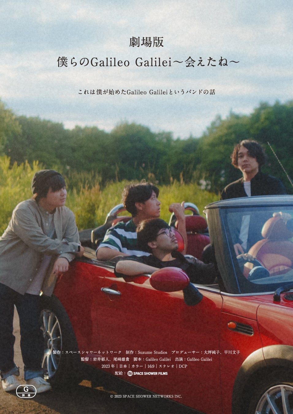 7年ぶり、そして新体制では初のリリース作品となるNew Album「Bee and The Whales」のリリース、さらにツアー“Bee and The Whales”Tour 2023を実施した彼らの特別番組『僕らのGalileo Galilei〜会えたね〜』がスペースシャワーTVで7月に放送されたが、放送後は彼らのファンにとどまらず、彼らを初めて知ったファンからも大きな反響があり好評を博した。そして、このたびTVでは放送されなかった未公開のドキュメンタリー映像とライブ映像を加え、『劇場版 僕らのGalileo Galilei〜会えたね〜』のタイトルで限定劇場公開することが決定した。