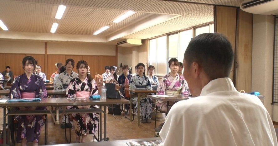 先日初めてうちわ娘の第14期生での顔合わせを行いました。まずは大阪天満宮にて天神祭の歴史やうちわ配布の作法、活動での心得を学び、ご祈祷を行いました。