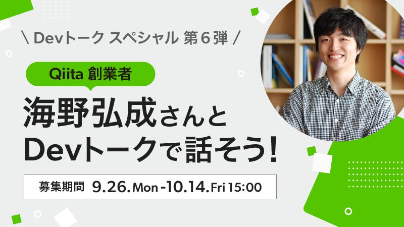 【Qiita創業者の海野氏と話せる!】日本最大級のエンジニアコミュニティ「Qiita」が「Devトーク スペシャル第6弾」の募集を開始