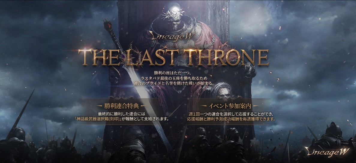 「リネージュW」最強の連合同士が競う闘争イベント、「THE LAST THRONE」が3月11日より始まります。