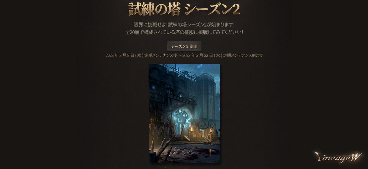 『リネージュW』最強の連合が集まり最強の武器を巡って争う「THE LAST THRONE」が3月11日より開催!人気の「試練の塔」シーズン2も本日よりスタート!