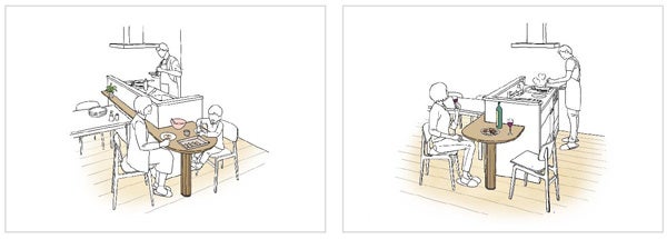 キッチンカウンターより低く設定しているため、子どもと一緒の作業もしやすく、家族で食事作りやちょっと晩酌など、家族が集まるさまざまなシーンにご利用いただけます。
