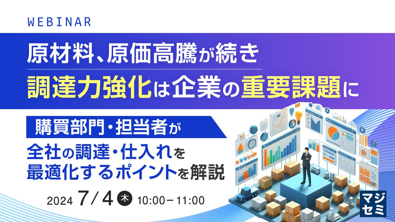 今回のセミナーでは、見積もりから検収までの一貫した調達支援を行う「PROCURESUITE(プロキュアスイート)」を紹介しながら、購買の事務工数削減と調達力強化を解説します。
