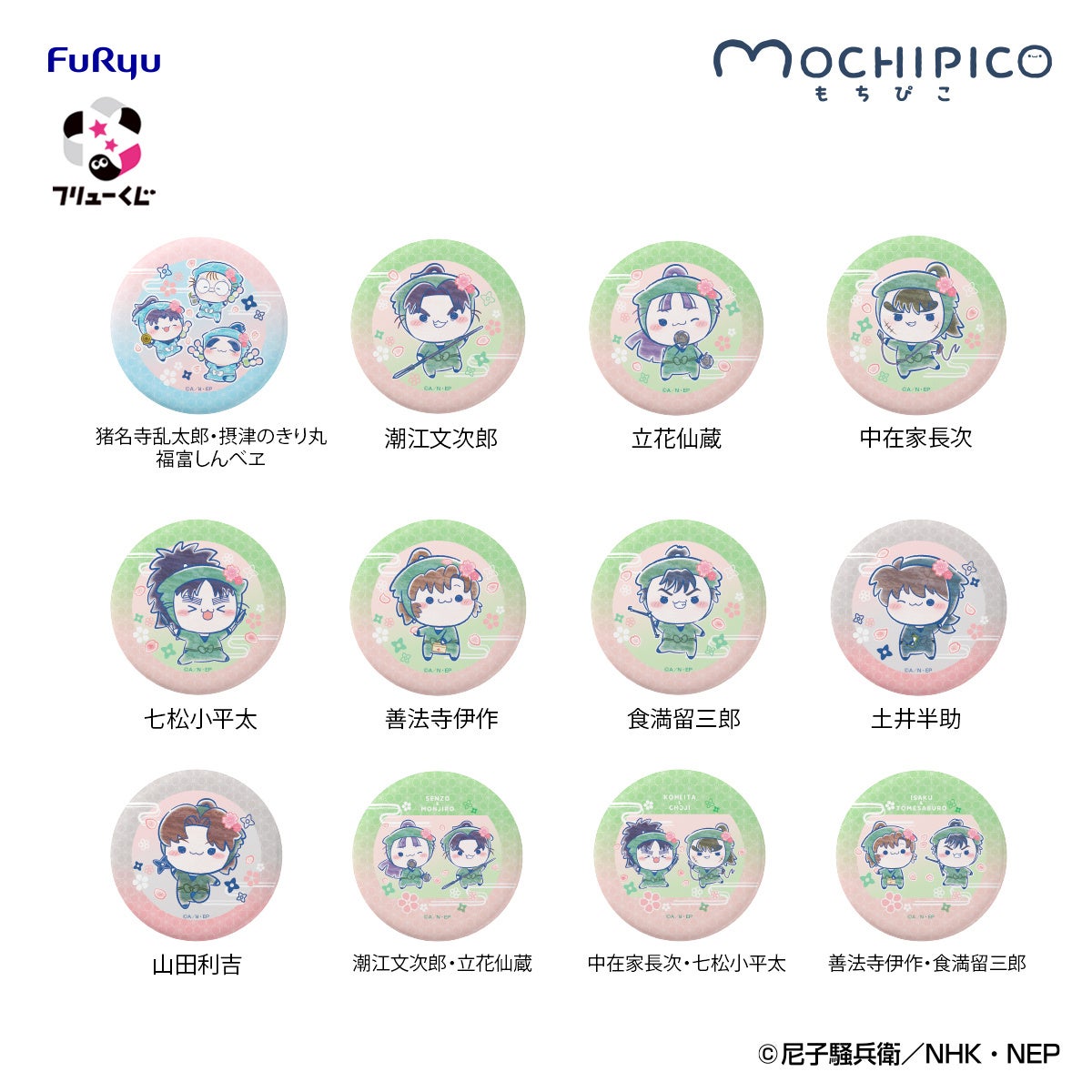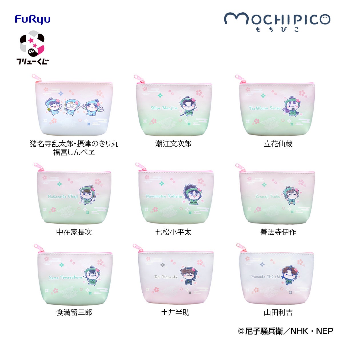 本くじでは、ちょっぴりシュールでかわいらしい表情が魅力のフリューオリジナルのぬいぐるみシリーズ『もちぴこ』を中心に、「桜を楽しむ忍たまたちのひととき」をテーマに描き起こしたイラストを使ったアイテムが登場。本日、『ラストゲット』賞と『ダブルゲット』賞を含めた全賞詳細を初公開いたします。