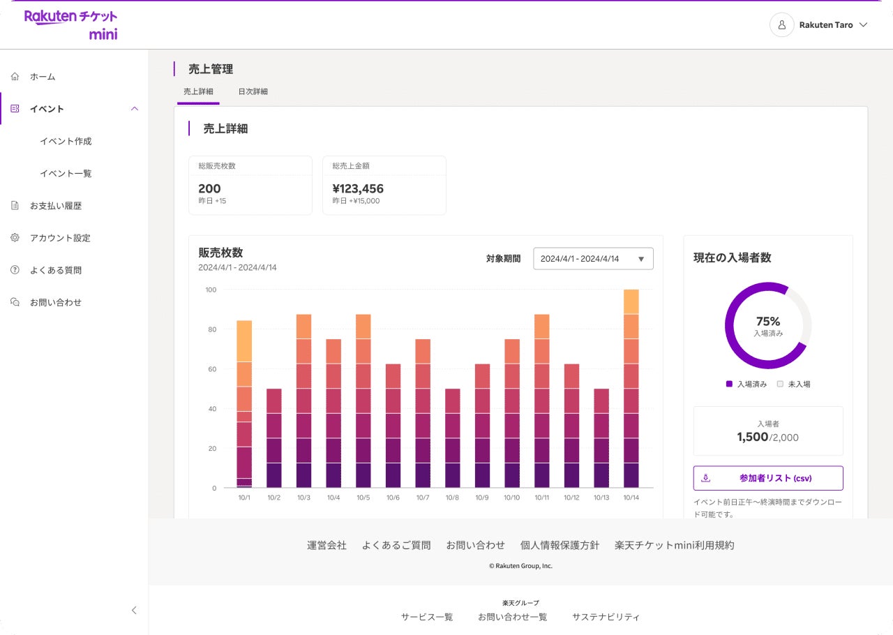 楽天チケット株式会社が運営するチケット予約・イベント情報サイト「楽天チケット」は、イベント主催者が「セルフオンボーディング」方式でチケットを販売管理できるシステム「楽天チケットmini」の提供を、本日開始しました(注1)。