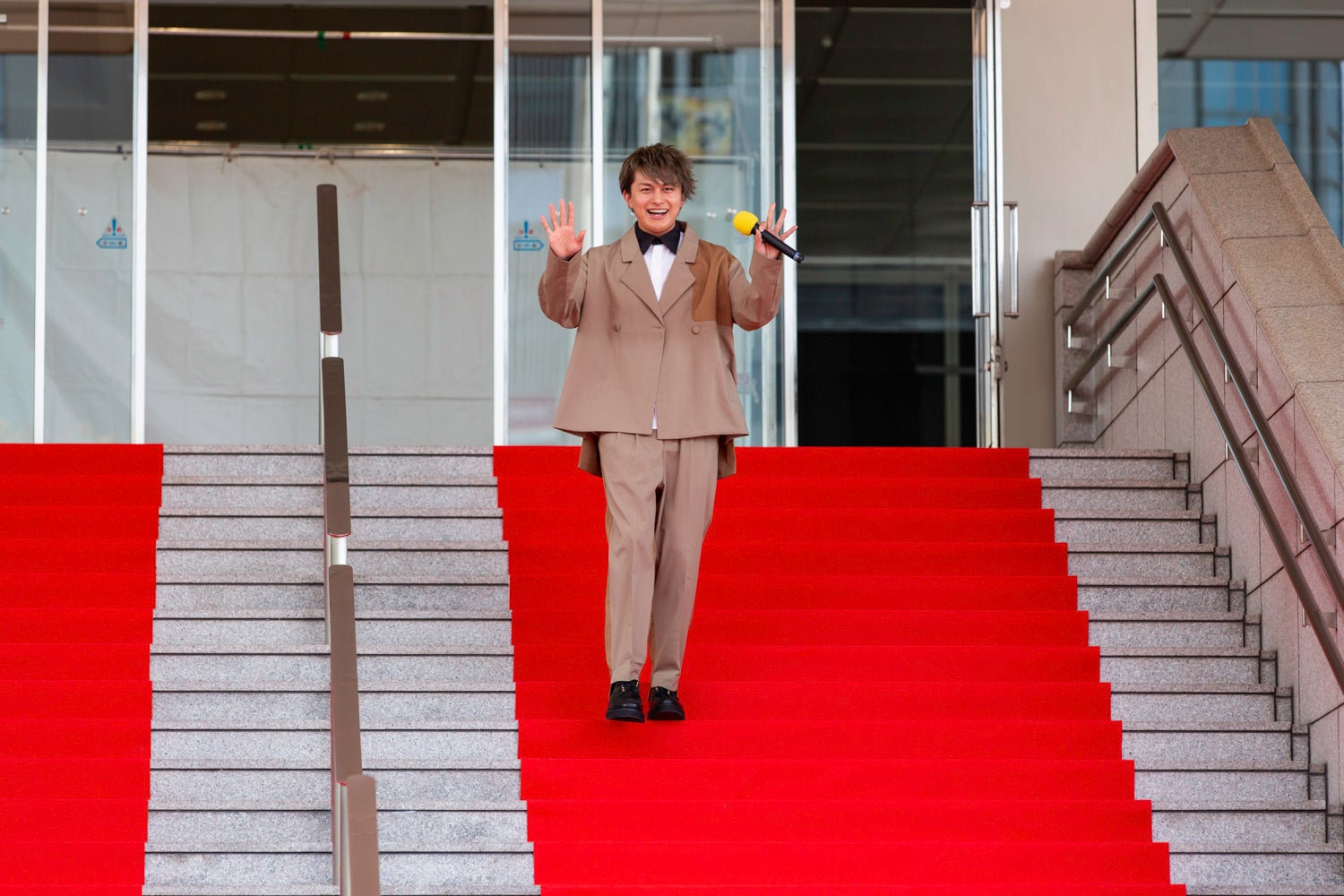 その後、会場中央のレッドカーペットが引きかれた階段から、仮面ライダー1号と、絶賛放送中の仮面ライダーリバイスが登場。それに続き、昭和・平成・令和の歴代仮面ライダー35人が続々と登場し、驚きの演出に場内から大きな歓声があがった。35人が勢ぞろいでポーズをきめ並ぶ姿は圧巻で、名古屋から始まる「THE仮面ライダー展」のスタートを盛り上げた。
