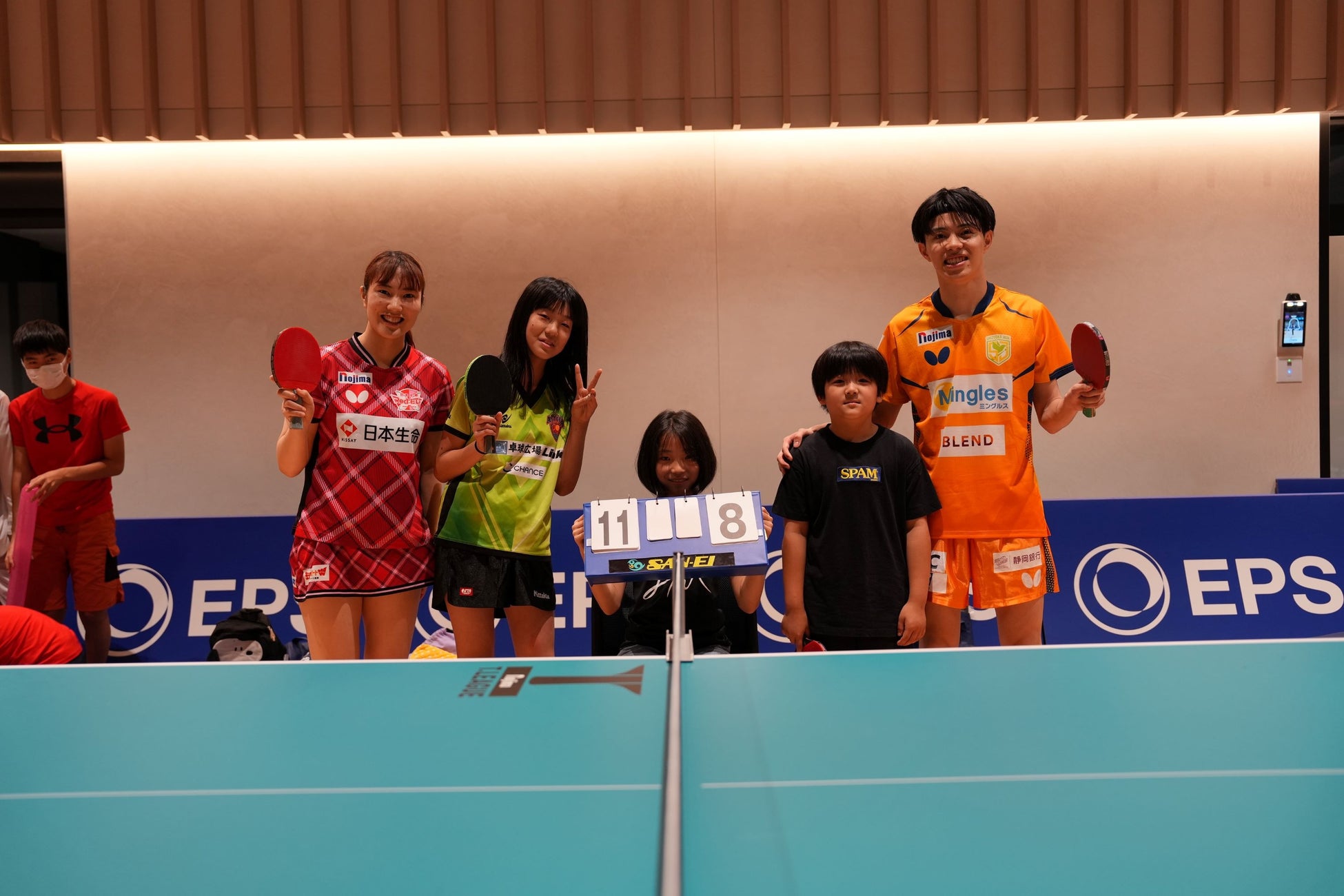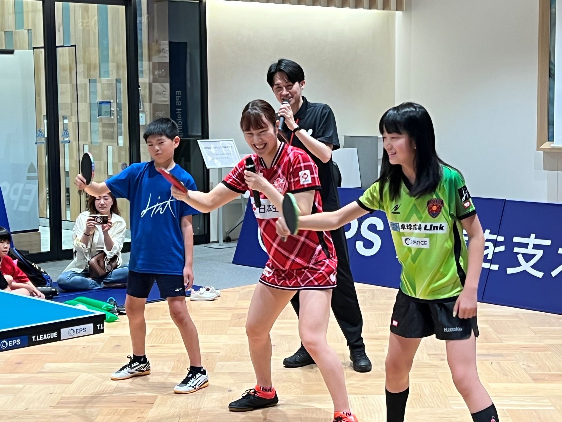 TリーグのオフィシャルウエルネスパートナーであるEPSホールディングス様と「第3回 卓球でつながるふれあいイベント」を開催しました!本イベントにはEPSホールディングス様が本社を置かれている飯田橋/神楽坂エリアの小学校や卓球場の生徒さんをご招待させていただき、イベント当日は、静岡ジェード・ 龍崎東寅選手、日本生命レッドエルフ・ 笹尾明日香選手にご参加いただきました。卓球の基礎技術の講習会から参加者とダブルスを組んでのエキシビジョンマッチ等も行い、今回初めて卓球に触れるお子様から、実際に選手お二人に挑戦するお子様まで、卓球を通じ、人と地域と企業がつながるイベントとなりました。