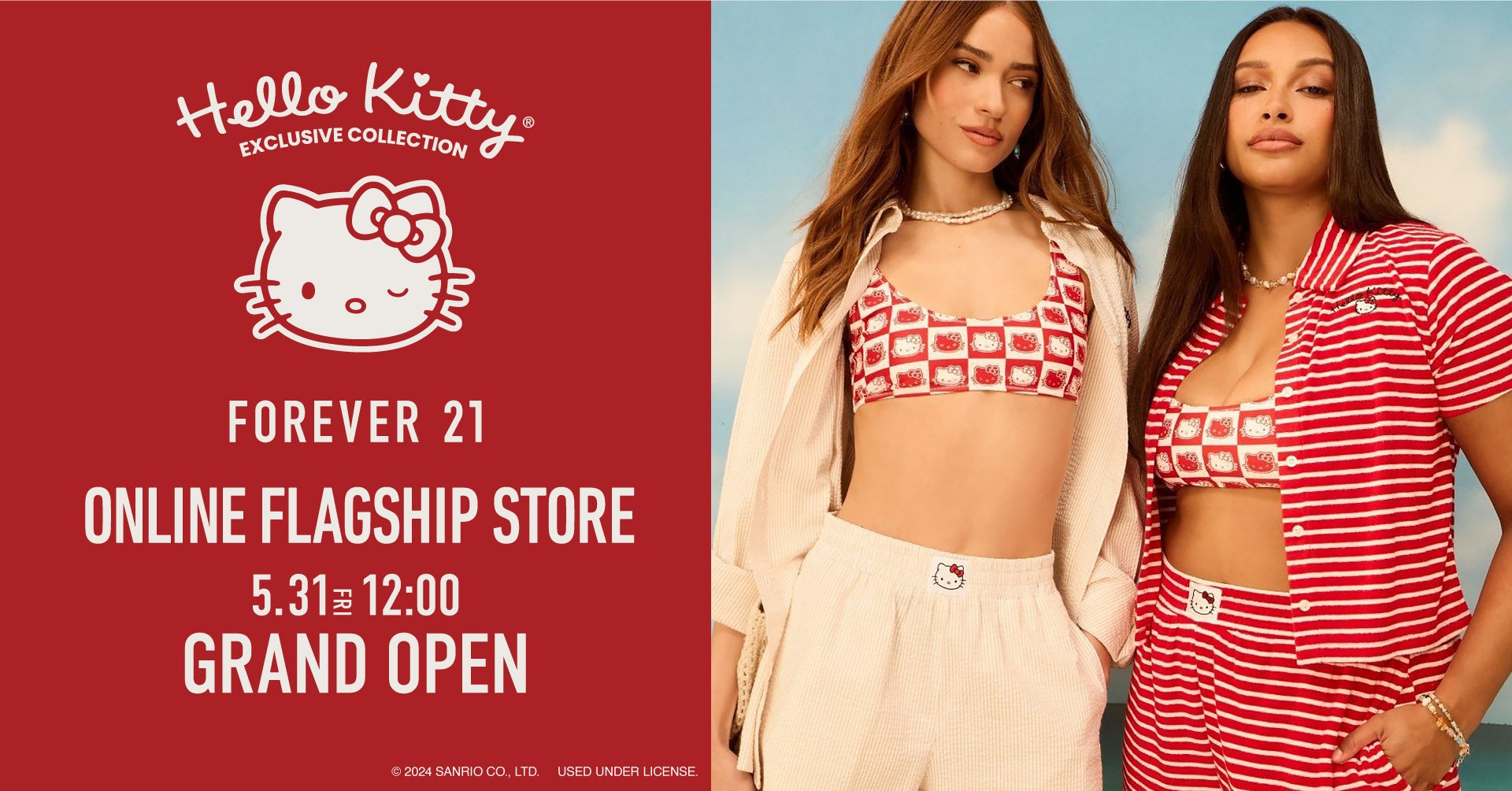 FOREVER 21 JAPAN ONLINE FLAGSHIP STORE限定で、USオリジナルの「HELLO KITTY SUMMER」コラボレーションのアイテムをウィメンズ16型、メンズ6型、雑貨14型の全36型を発売します。