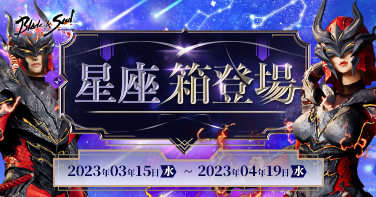 新衣装「紅麟」や新幻影武器「黒麟の幻影武器」、様々なネームプレートなどが手に入る「星座箱」が期間限定で登場します。