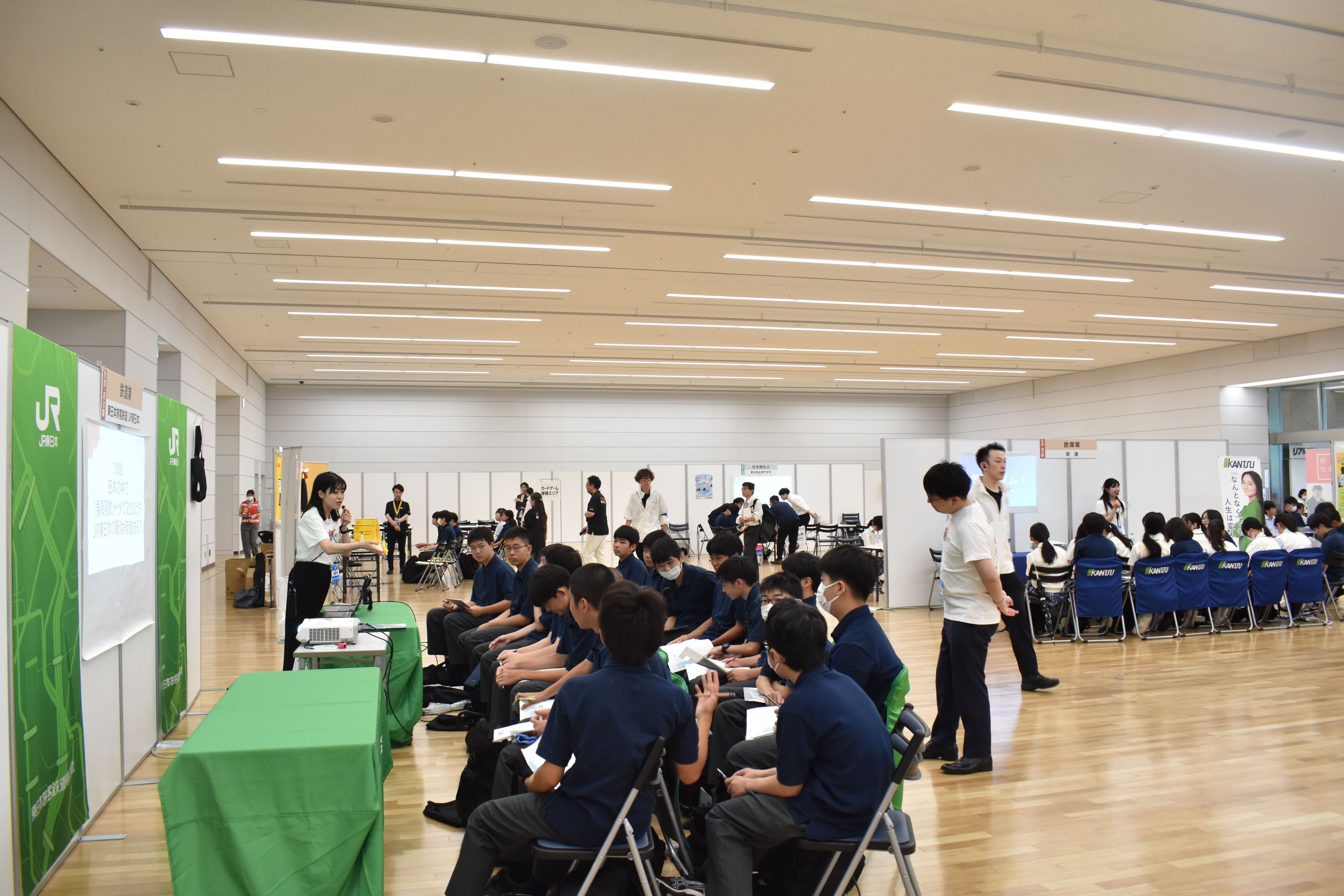 本イベントには、各業種・職種を代表する19の企業・団体がブースを出展し、中学生に向けて仕事理解を深めるためのプレゼンテーションやワークショップを実施しました。ブースでは、業種や職種の基本的な説明に加え、実際の業務において他の業種とどのように連携しながら仕事を進めているのかといった、リアルな仕事の流れも紹介されました。