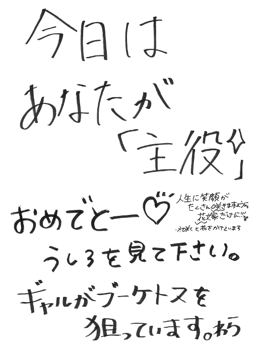 最後に、結婚式の式場やドレス選びなどに迷っている花嫁への直筆メッセージをお願いしました(上がはるさん、下が荒川さん)。はるさんは「一生の想い出、最高の日になると思うので、どれだけ時間をかけてもいいし、その日だけはわがままでいいと思います。自分の納得いくまで悩んで。その日はあなたが主役なので」と語ってくれました。