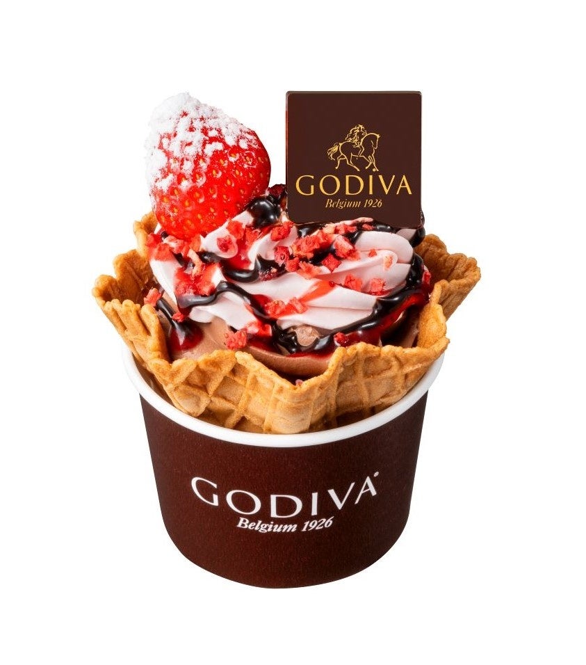 「ゴディバ」ソフトクリーム ダブルダークチョコレート&ストロベリーエスプーマ ~生いちごを添えて~(1個)999円