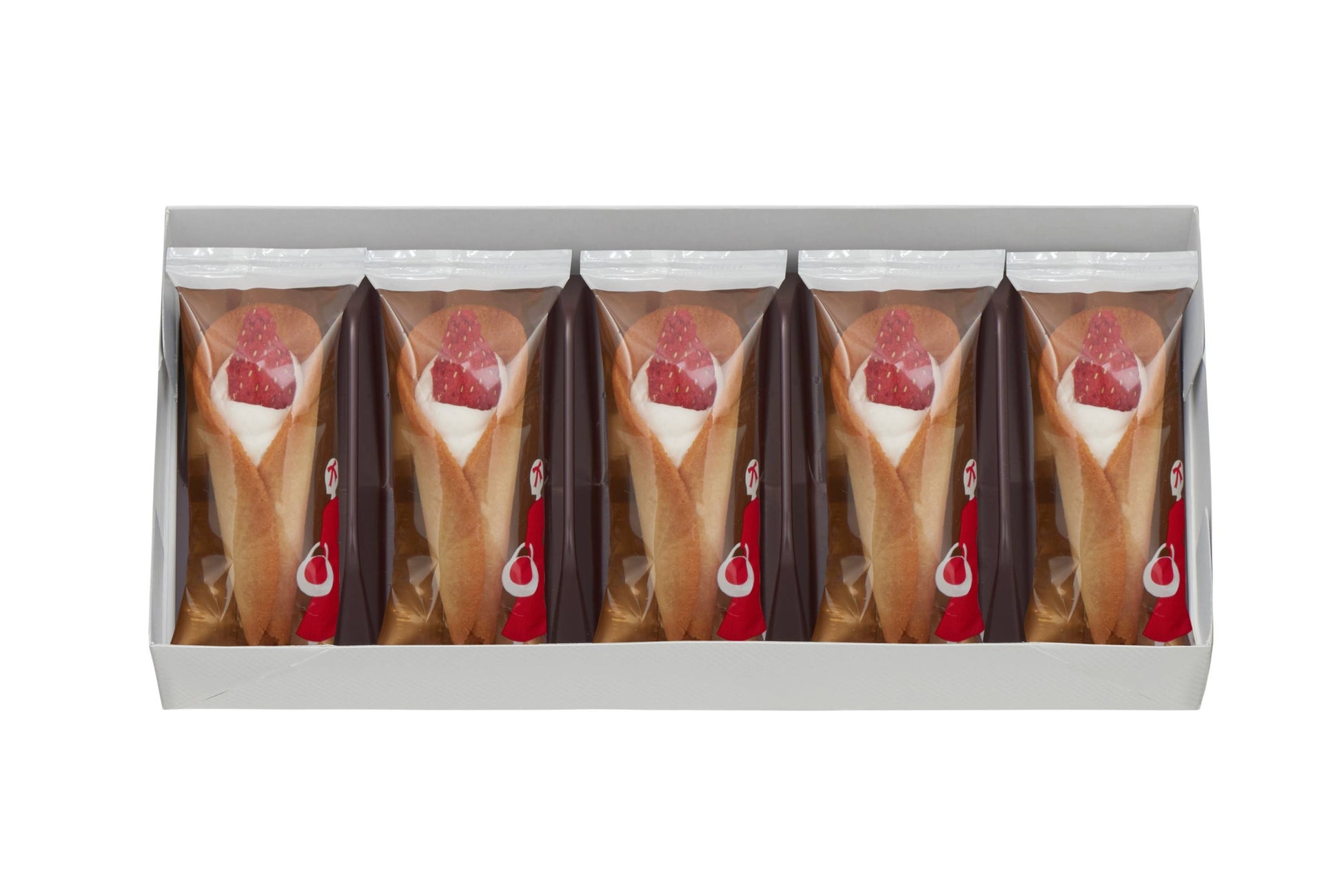 ホワイトチョコレートを使ったミルキーなクリームと甘酸っぱい苺をくちどけの良いチュイールで巻きました。
