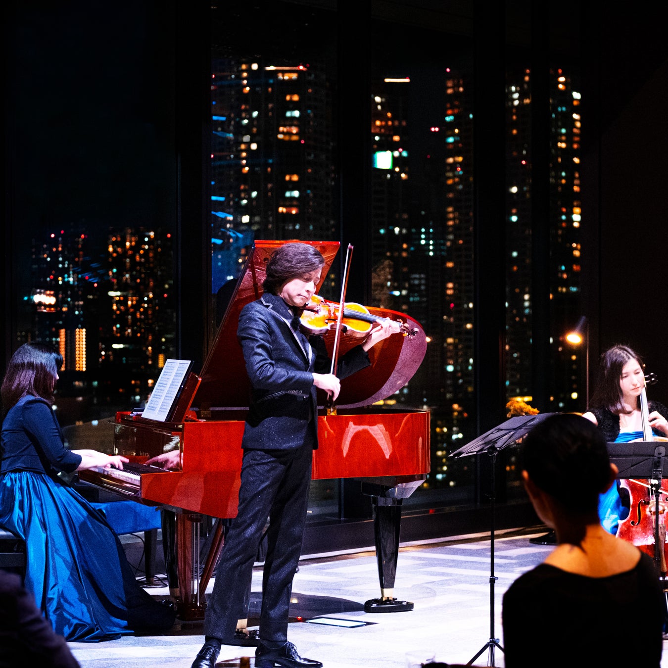 メズム東京では、16階ロビーエリアにて、毎晩アーティストによるライブパフォーマンス「ショーケース」を開催しています。多彩なミュージシャンの生演奏を間近で楽しめる、メズム東京ならではのコンテンツとして、ご宿泊のお客様はもちろん、バー&ラウンジ「Whisk」をご利用のお客様にもご好評をいただいております。ロビーに設置された1963年製ヴィンテージピアノの演奏をはじめ、弦楽器、コーラス、和楽器など、多彩な音色を煌めく夜景とともに心ゆくまでお楽しみください。