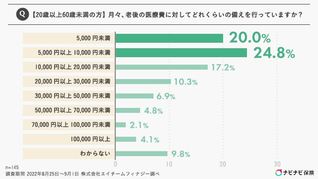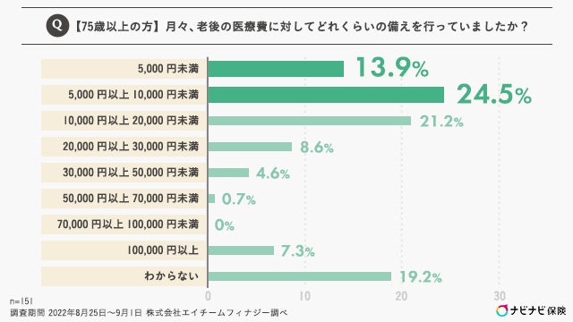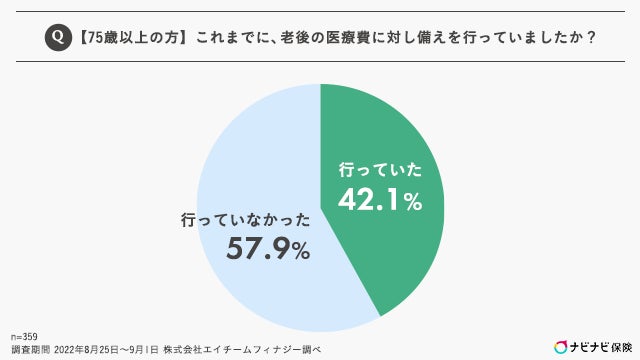 そこで、ITと人の力を駆使して世の中からお金の不安を解消し、より人生が豊かになる社会を実現することを目的とするエイチームフィナジーが運営する「お金の不安を解消する」メディアのナビナビ保険では、今回直近的に影響を受ける75歳以上の人と、将来影響を受ける20~59歳の勤労世代の人に分けて、現在医療費への備えを行っている人の割合やその方法、また今回の改正がどのように作用するのか等を独自に調査しました。