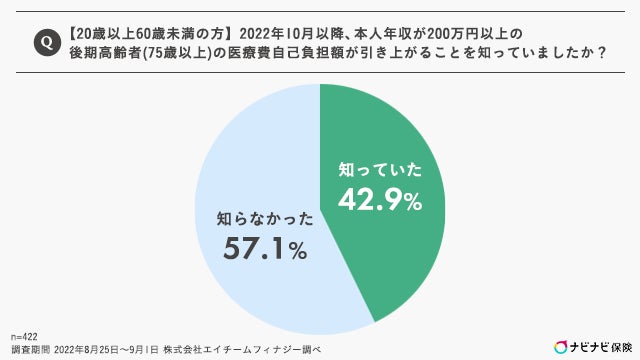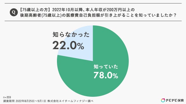 「ナビナビ保険」が高齢者の医療費負担割合の増加に関する意識調査を発表 当事者の2割が10月より自己負担額が増えることを知らないと明らかに