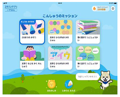 また、ミッション機能や正誤状況による自動出題機能により、個々の子どもの学習状況に合致したコンテンツを提案。無学年学習のため、先取りはもちろん過去の学習に戻るなど、子どもの興味関心に広く対応しています。