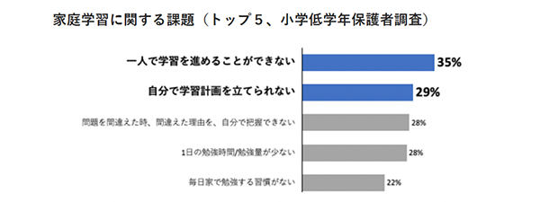 文部科学省は、2021年答申にて、目指すべき新しい時代の学校教育の姿として「全ての子供たちの可能性を引き出す、個別最適な学びと、協働的な学びの実現」を提言しています。GIGAスクール構想を背景にICT環境が学校現場でも整い、ICT端末の普及とともに個別最適な学びが可能となりその重要性も増しています。学校だけでなく家庭でもタブレット端末などを利用した学習のニーズは高くなっていますが、同時に、家庭学習に対する課題もあり「一人で学習を進めることができない」「自分で学習計画を立てられない」など、日々の学習内容を保護者が選定する負荷が高く、子どもにとって簡単すぎたり難しすぎたりと、子どもに合わない難易度になってしまっているケースも多いと考えられます。