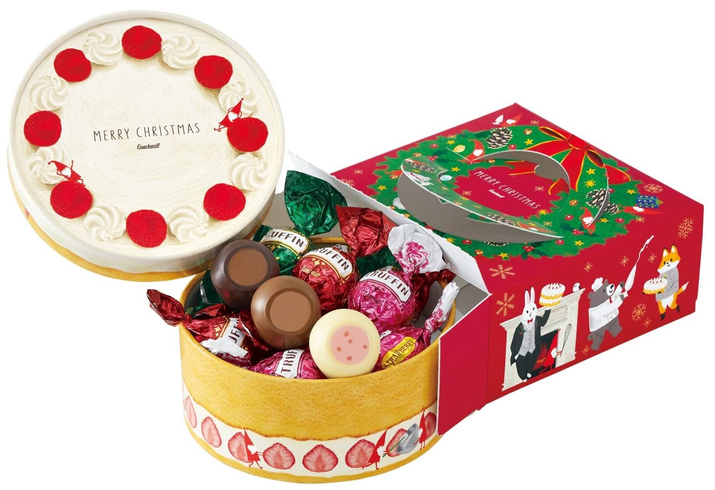 クリスマスプレゼントにぴったりのケーキ型ボックスに入っています♪