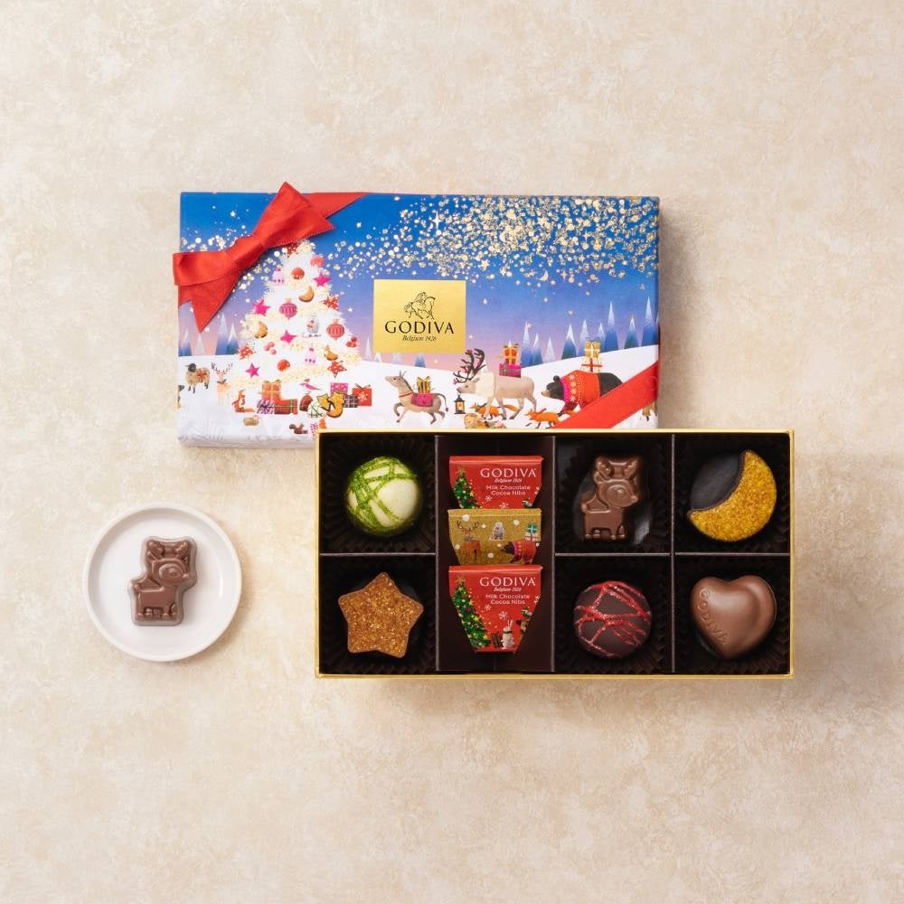 森の中でライトアップされたクリスマスツリーをイメージした限定チョコレート入り。