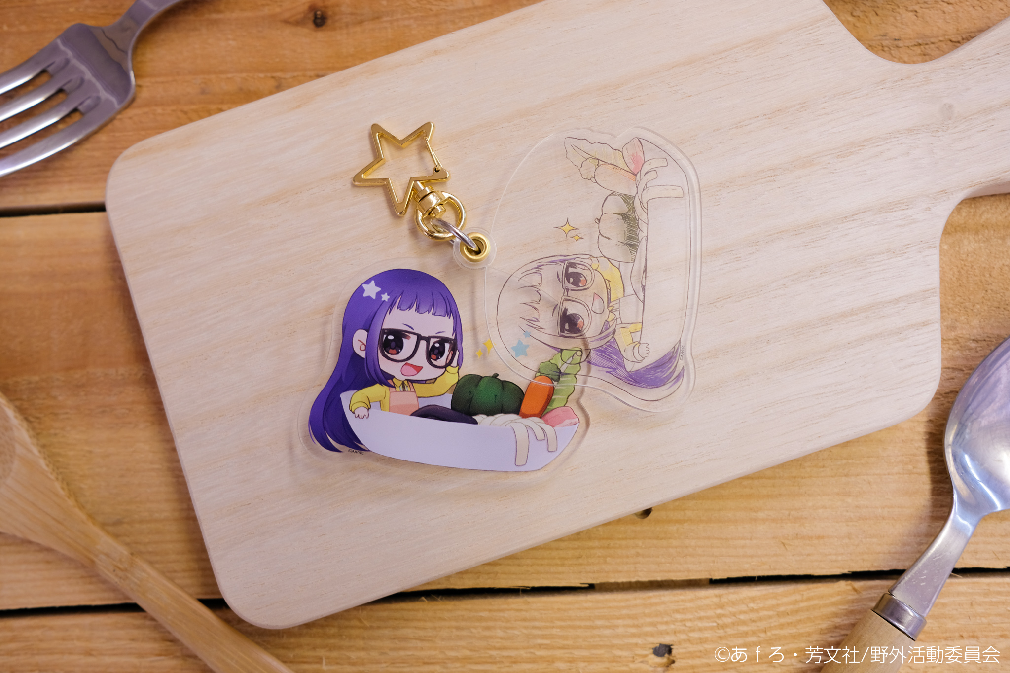 作中に登場する料理の具材と一緒に、食器に入っているキャラクターが可愛い描き起こしアクリルキーホルダーとなっています!