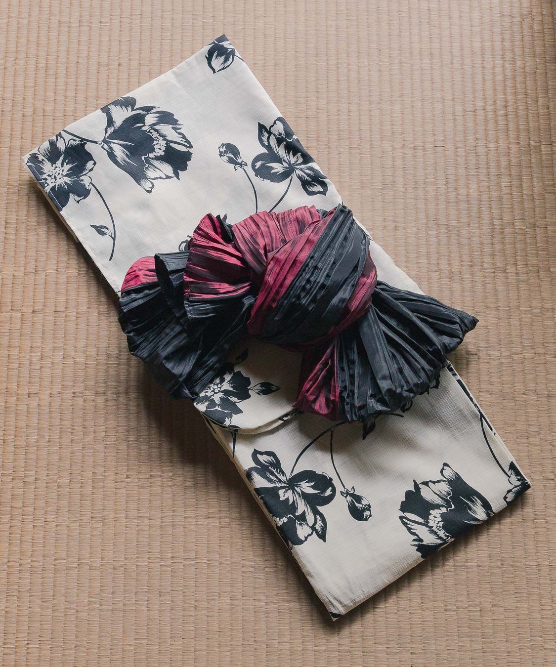 “今“を表現すべく、通常の浴衣とは一味違うカラーリングや柄の組み合わせ、2WAYで使用できるアレンジ自在な兵児帯など、サンダルやミニバッグ、アクセサリーにも合わせやすいよう、Andemiuの上品で好印象なファッション感を随所にちりばめました。