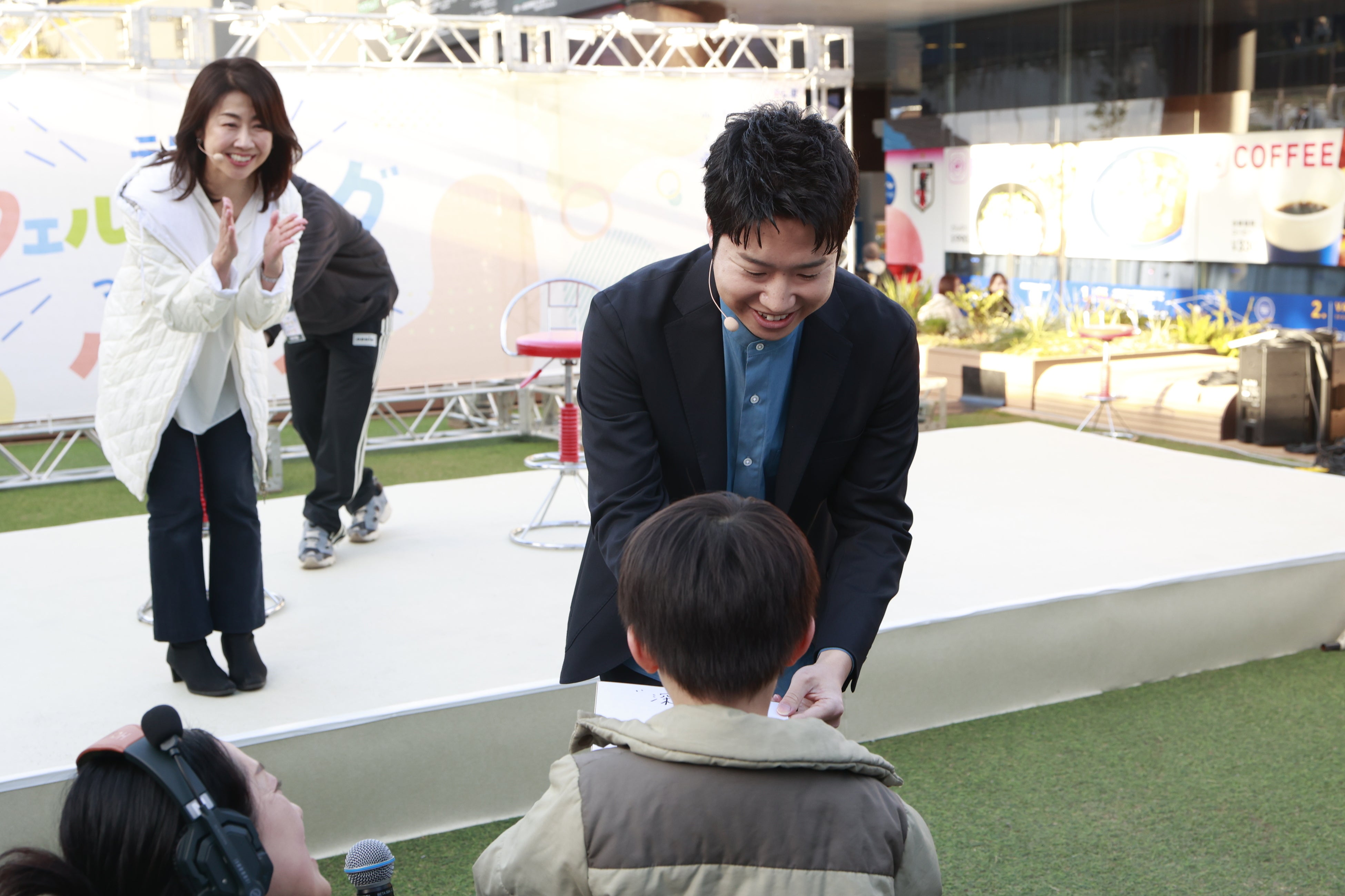 快晴の中、集まってくれた観客に手を振りながら笑顔で水谷が登場し、早速トークショーがスタート。WBCやミラノ・コルティナオリンピックなど盛り上がりをみせているスポーツについて触れると、「5月には世界卓球がロンドンであります。テレ東で放送しますし、僕も現地に行かせていただきますので、ぜひ見てくださいね」と開始早々しっかり告知をしていました。
