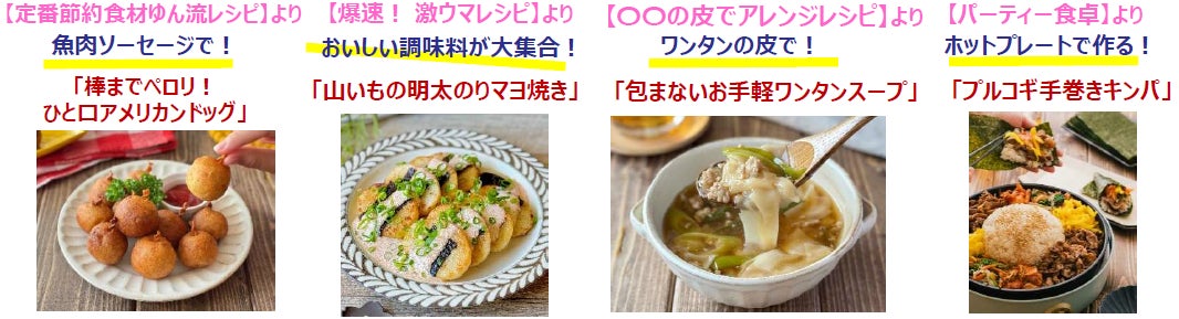 “〇〇の皮”を使った大人気レシピや、SNS再生回数最大2700万回の超バズリレシピ、魚肉ソーセージを使ったアメリカンドッグ、マーボー豆腐の素で作る坦々そうめんなど、ありそうでなかった子どもが喜ぶアイデア満載のレシピ全188品を掲載。ママ・パパはもちろん、忙しい現代人に役に立つこと間違いなしの一冊です。
