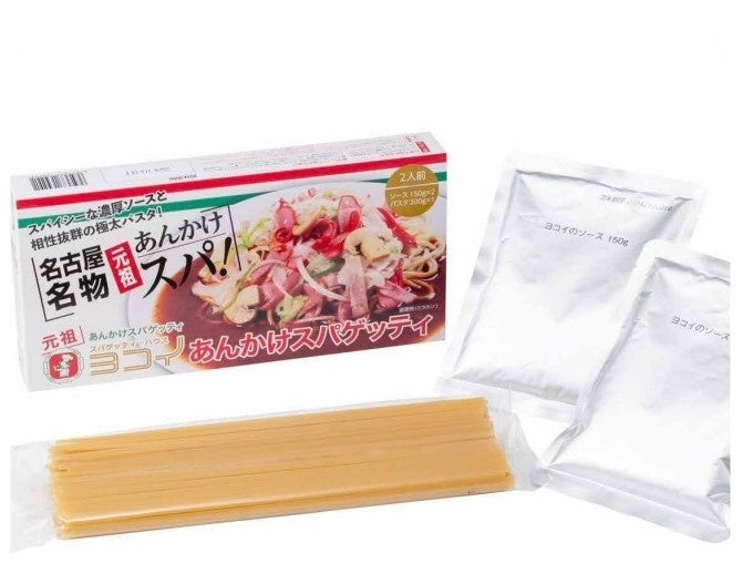 右)創業当時のレシピをレトルト商品として販売してから、30年以上。元祖あんかけスパゲッティを、お手軽にご家庭でもお楽しみいただけるギフトセットをご用意しました。作って食べれば、お家が名古屋に染まる!?