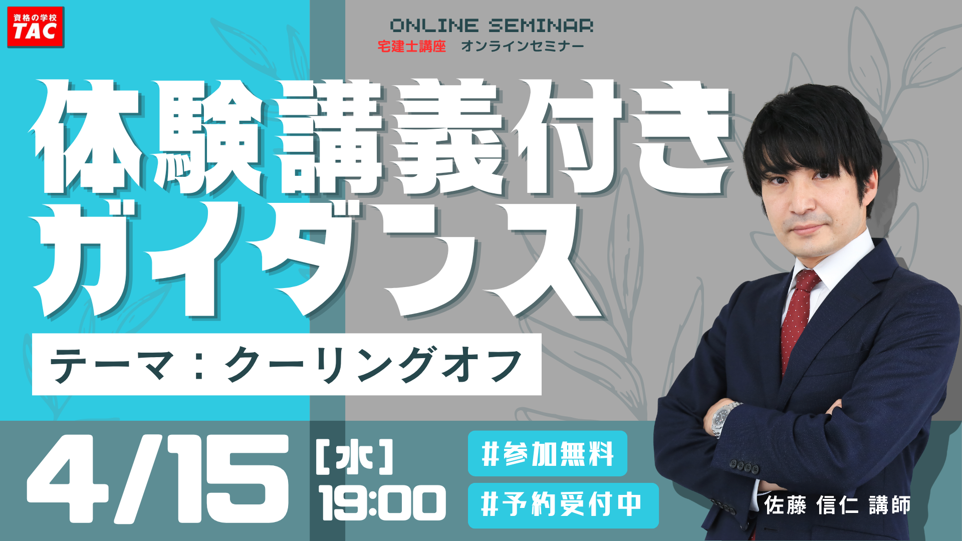 【TAC宅建士講座】4/15(水)19:00開催!宅建士講座 無料セミナー開催!