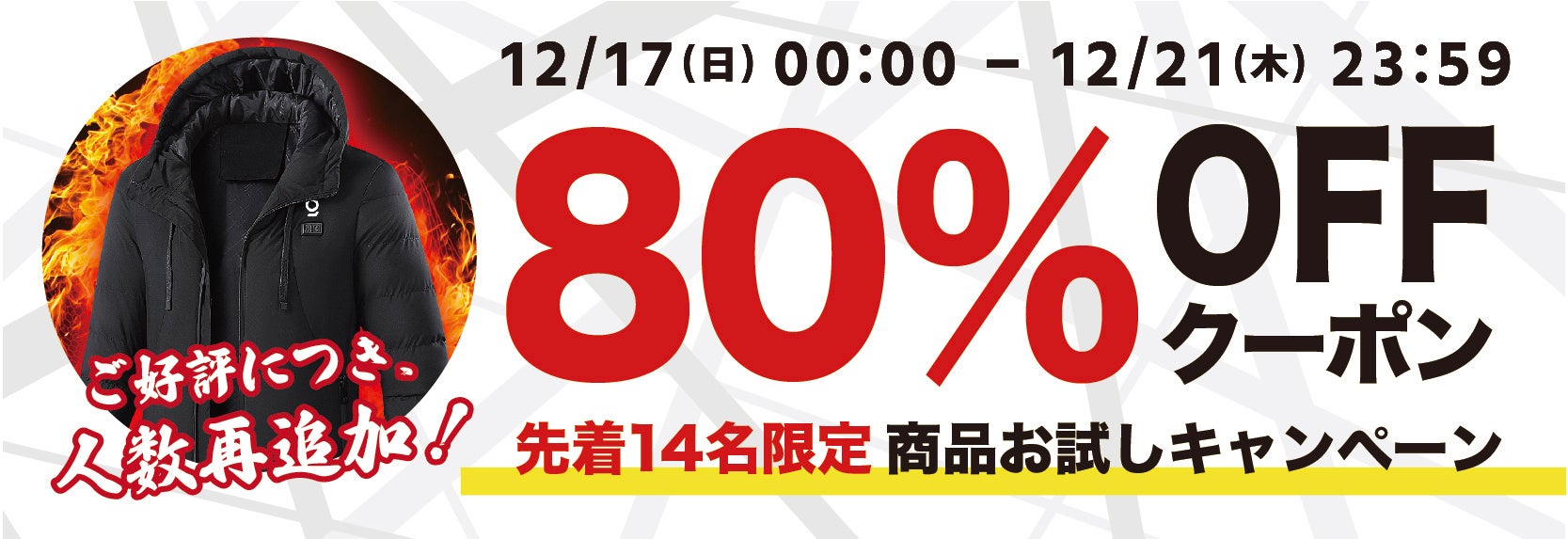 【先着14名様】【80%OFF】上半身11箇所を温めるヒートジャケット「Warm-G Ultra」の「お試しキャンペーン」を「Gloture楽天ストア」で実施中【12/21まで】