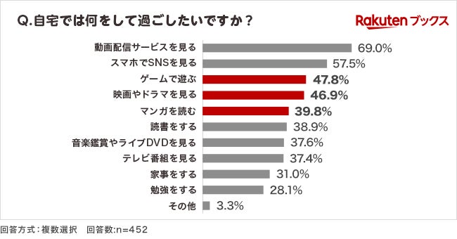 ■家でしたいこと上位は「ゲームで遊ぶ」「映画やドラマを見る」などエンタメに触れる人が多数