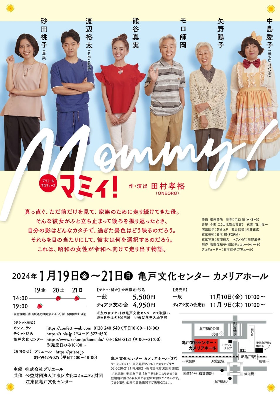 主演 熊谷真実 ✕作・演出 田村孝裕(ONEOR8)がお届けする ある母の物語 モロ師岡、渡辺裕太ら新キャスト4人を迎え再演 カンフェティでチケット発売