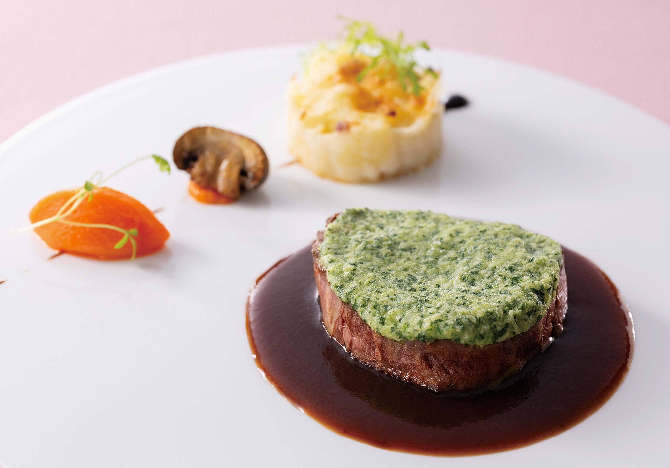 ◇ 国産牛フィレ肉のポワレ 法蓮草のヴィエノワーズ