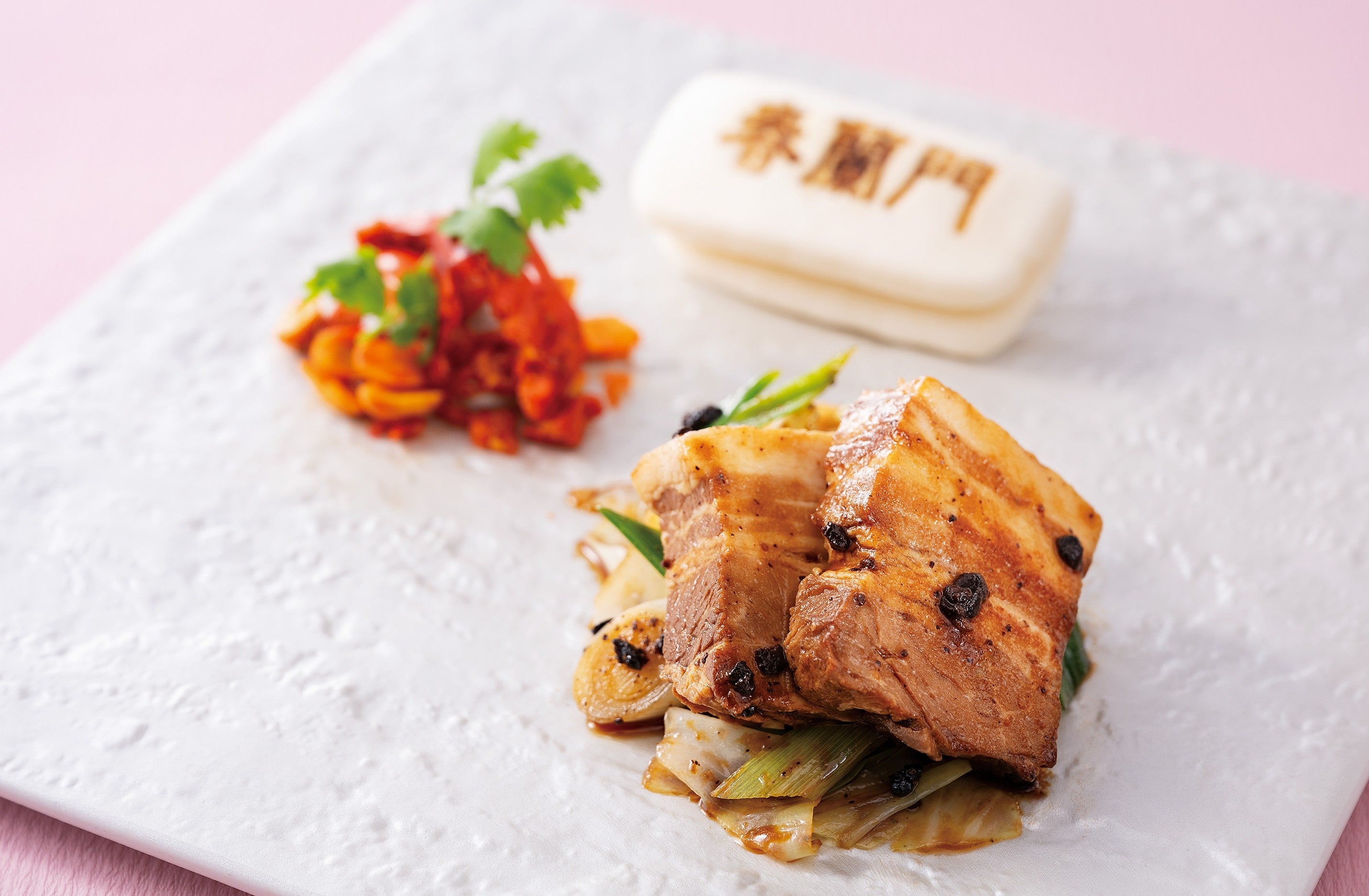 ◇ 厚切り豚バラ肉の回鍋肉 蒸しパン添え