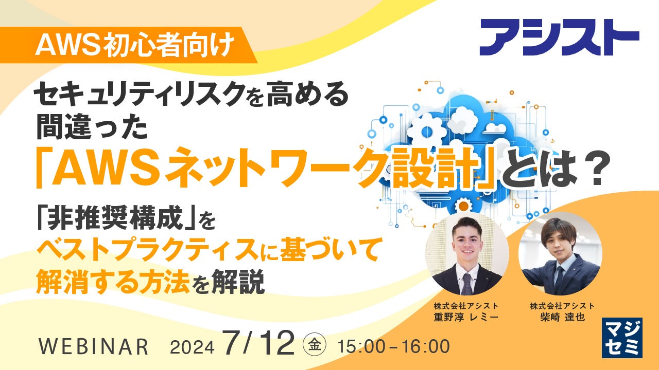 「AWSが推奨するセキュリティ設定やベストプラクティスを理解したい」「今後構築予定のAWS環境が非推奨構成とならない方法が知りたい」など効果的なAWS利用を実現したい方は、ぜひご参加ください。