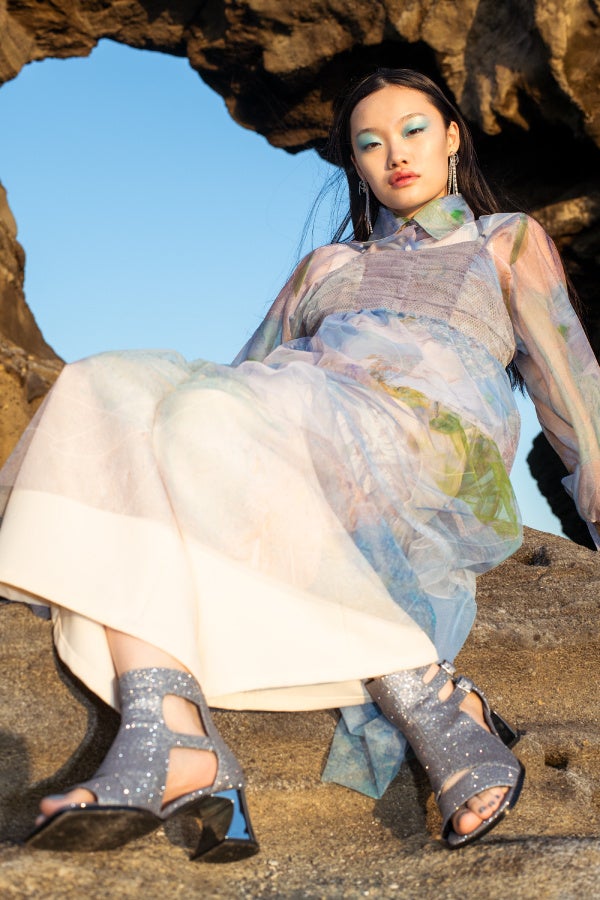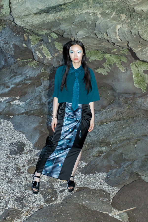 第3弾となる今回は、自然と人間の関係性やアニミズム的自然観をテーマに写真作品を制作するフォトグラファーayakaendo氏をゲストに迎え、同氏の作品をとんだ林氏がコラージュしたオリジナル柄を、シアーシャツやスカートなど5つのアイテムに落とし込みました。