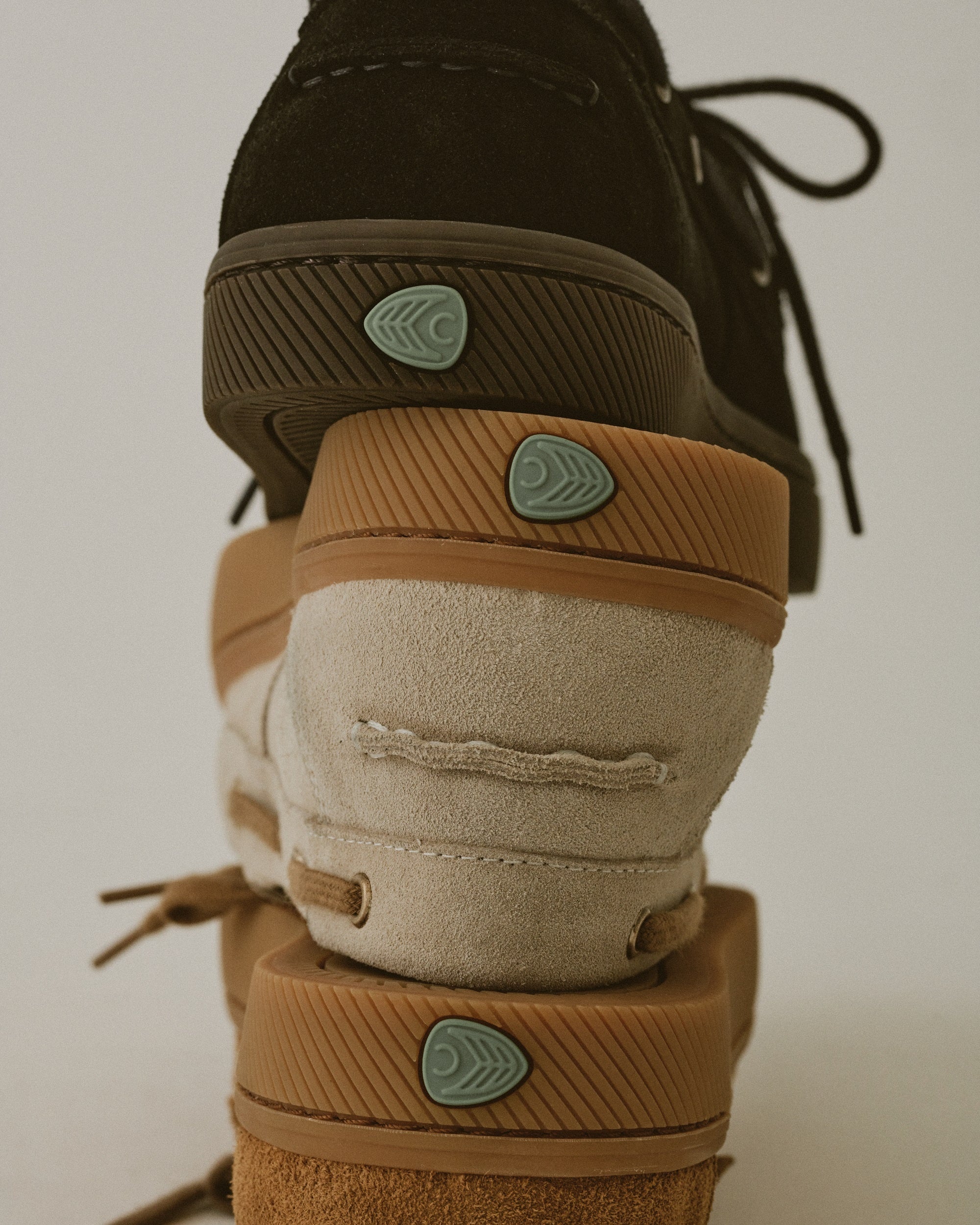 今回の別注は、CARIUMAの「LIFESTYLEライン」より、日本未発売モデル〈MARE BOAT(マレ ボート)〉を採用。オーセンティックなデザインをベースに、JSRならではのエッセンスを加え、よりカジュアルでストリートライクな一足へと昇華しました。